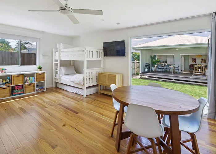 Offering a patio overlooking the garden, the 3-bedroom Moffat Beach Entertainer With Kids Retreat & Walk To Beach Caloundra villa is located just 5 minutes' walk from the Seaview Art Gallery. Located a short way from the visit Caloundra Lighthouses, the holiday home provides Wi-Fi and parking.